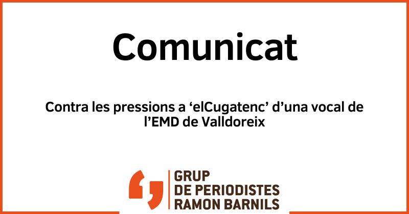 El Sindicat de Periodistes de Catalunya / Sindicat de Professionals de la Comunicació (SPC)  i el Grup de Periodistes Ramon Barnils (GPRB) condemnem les pressions exercides contra el periodista Jordi Pascual i el mitjà elCugatenc arran de la publicació d’una investigació sobre el coordinador de Junts per Valldoreix, Marc Monells, i la vocal del partit a l’Entitat Municipal Descentralitzada (EMD), Lluïsa Muñoz.